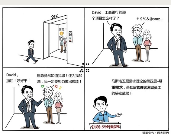 据说,有次前微软中国总裁唐骏走进电梯,里面有一位差了好几个级别的底层销售,和他女朋友。唐骏问:David,工行那个项目进展怎样了?David一惊,然后语无伦次地回答了几句。电梯到了,唐骏拍了拍他肩膀:好好干,David,加油。这个David完全没想到,唐骏居然知道他的名字,他正在做的事,而且在他女朋友面前,这么给面子。从此,他被彻底收服了。