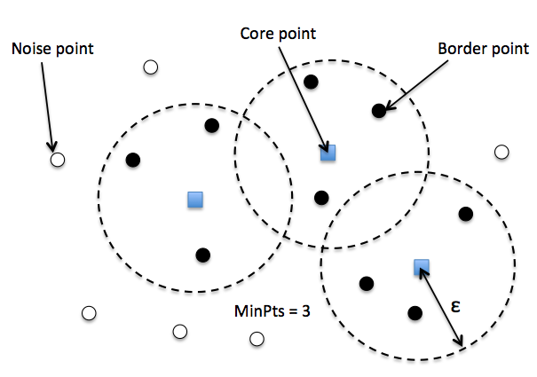 db = DBSCAN(eps=0.2, min_samples=5, metric='euclidean')