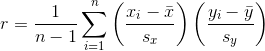 return (sum([i*j for i,j in zip(standard_score_x, standard_score_y)]))/(n-1)