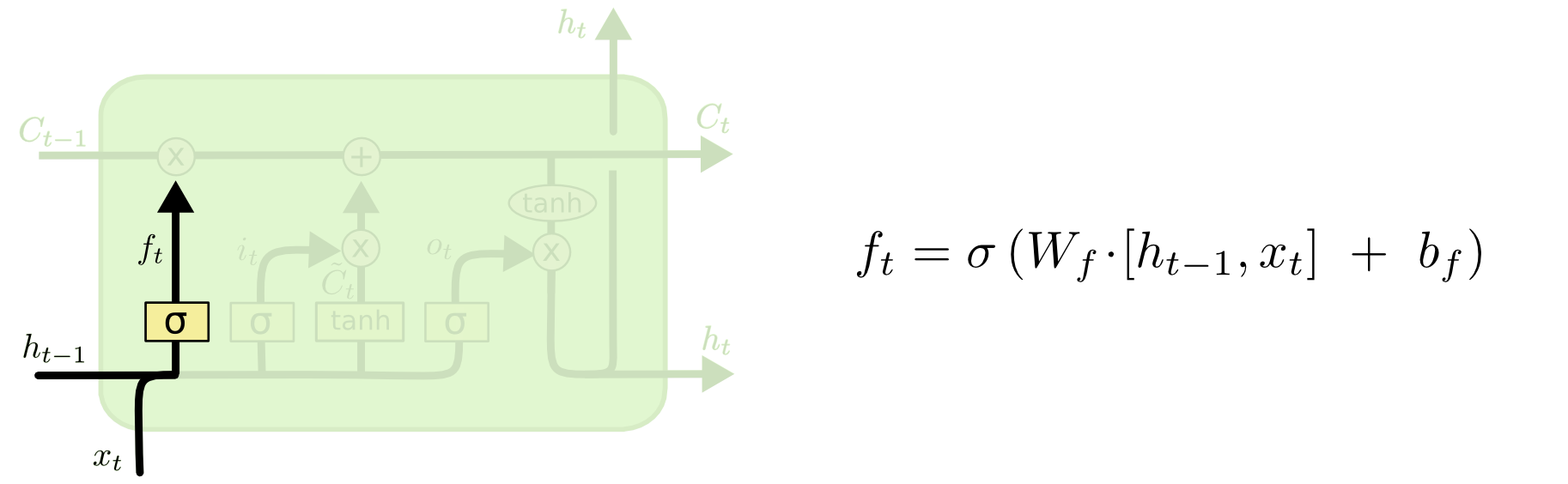 cell的状态像是一条传送带,它贯穿整条链,其中只发生一些小的线性作用。信息流过这条线而不改变是非常容易的。
