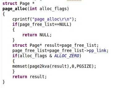 代码逻辑很简单,从page_free_list头剔除一个Page,然后改变page_free_list使其为其pp_link即可。