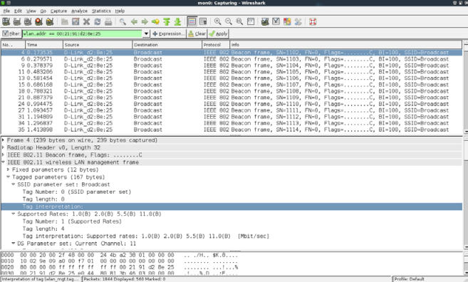 Wireless Lab的 SSID从信标帧中消失了。这是隐藏 SSID 所做的事情: