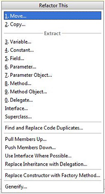 图4-1:重构器Refactor This菜单,包括了大部分的有用重构操作。