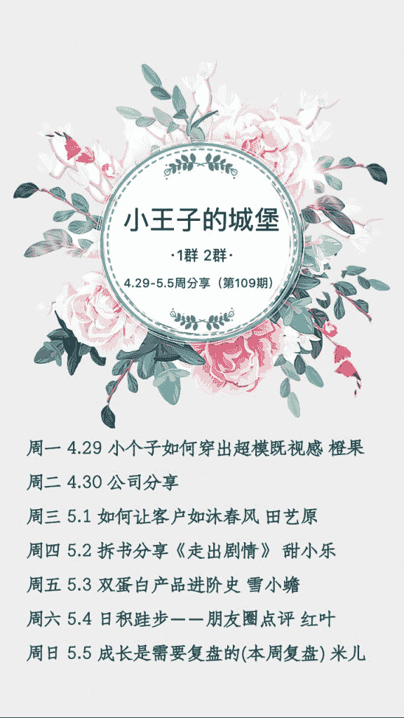 4、 海报组。 职责:负责我们团队的各种海报制作。基础群每周一张课表,每日分享的主题海报设计;销售精英群的海报设计;我们一个季度的招商会海报设计。