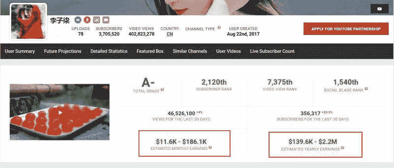 第三,打开某频道并复制主页链接,比如李子柒频道主页https://www.youtube.com/channel/UCoC47do520os_4DBMEFGg4A(不低于50万美元/年)