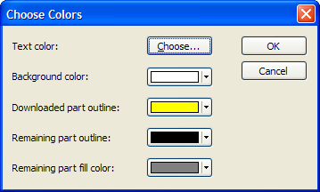 对话框中使用了Tim Smith的文章“Color Picker for WTL with XP themes”中介绍的一个很棒的按钮类,可以查看Kibbles工程中的CChooseColorsDlg 类的代码了解这个按钮类是如何工作的。“Text color” 按钮是一个普通的按钮,它的响应函数OnChooseTextColor()演示了如何使用WTL的CColorDialog类。第二个工具栏按钮的功能是使用随即颜色显示下载过程。