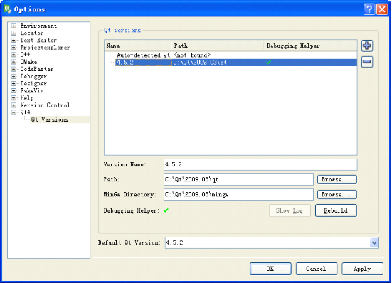Qt Creator 允许使用多个 Qt4 版本,并且可以在不同的版本间快速切换。