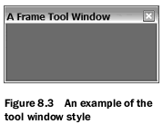 上面这组样式中,屏幕画面最需要的样式是wx.FRAME_TOOL_WINDOW。图8.3显示了一个小的结合使用了wx.FRAME_TOOL_WINDOW、wx.CAPTION和wx.SYSTEM_MENU样式的例子。